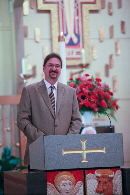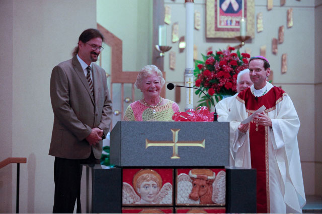 At a special Mass on April 24, 2013, at St. Peter Church in Greenville, the 2012-2013 Msgr. Gerald Lawrence Lewis Award for Excellence in Teaching was presented to Joseph “Joe” Hughes, 6th–8th Grade Social Studies teacher at St. Peter School.
